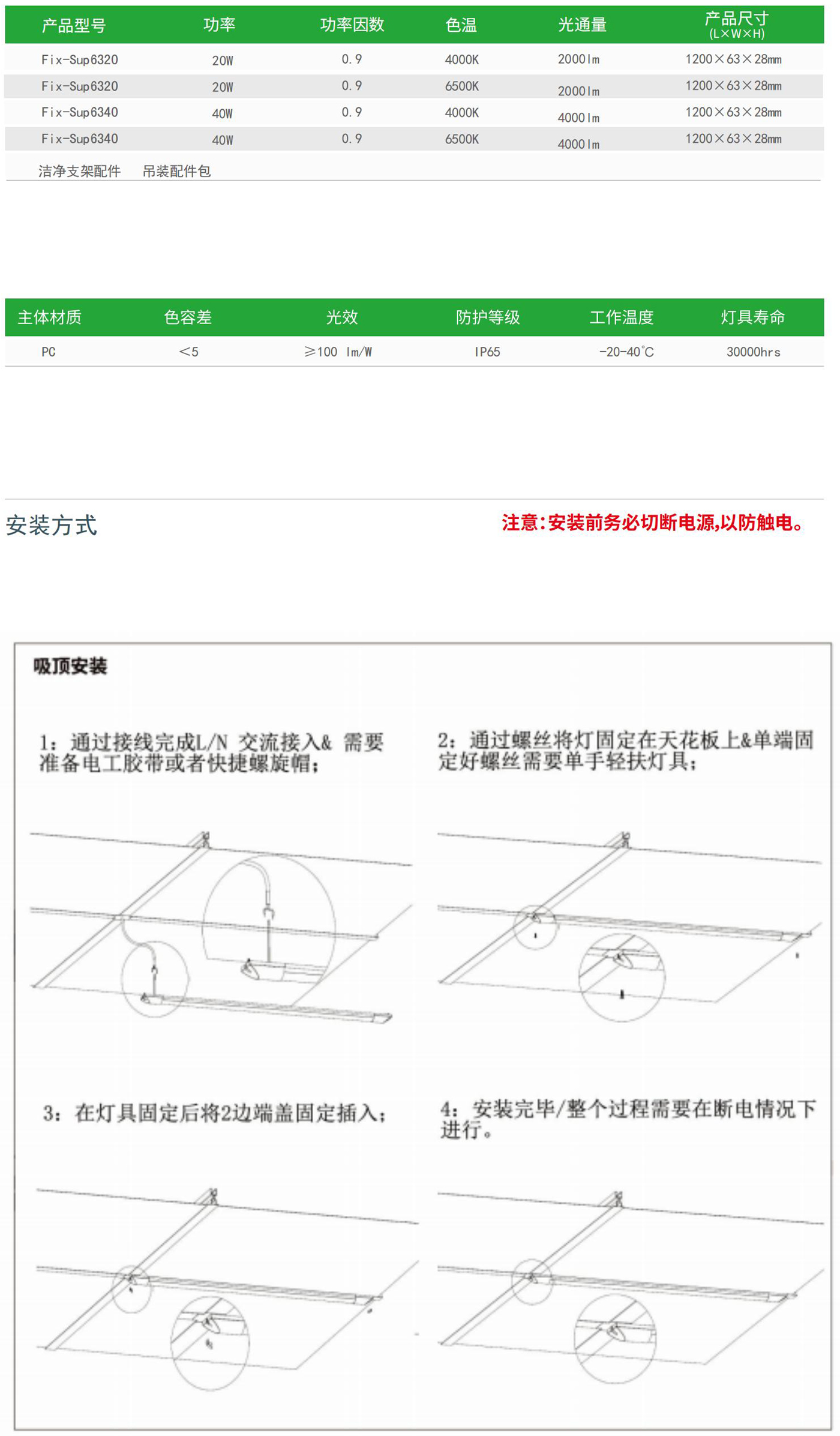 螺釘式吸頂,易安裝,配合點膠更密封,防護等級IP65,適用于各種潔凈空間照明。