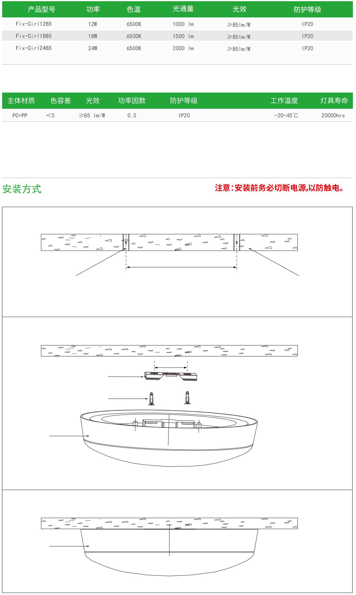 吸頂式安裝,出線方式側邊及背部,安裝牢固便捷。
